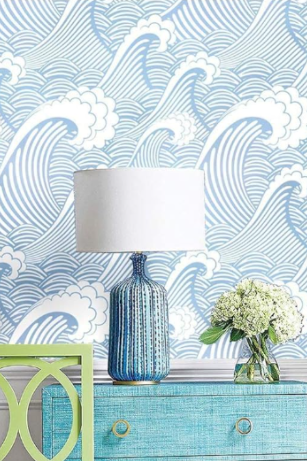 Transform this space into your personal oasis and instantly transport yourself to your favorite beach days! With easy-to-apply wallpaper and vibrant green accents, this room creates a calming retreat that melts away stress. Feel the warmth of the sunshine, listen to the soothing sound of crashing waves—this space is calling your name and ready to inspire tranquility every day.